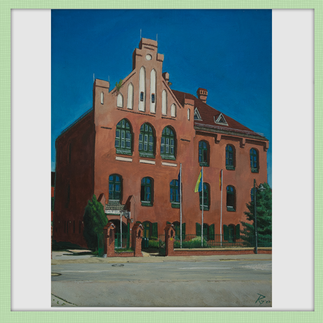 Rathaus Storkow (18 x 24 cm, Acryl auf Leinwand)